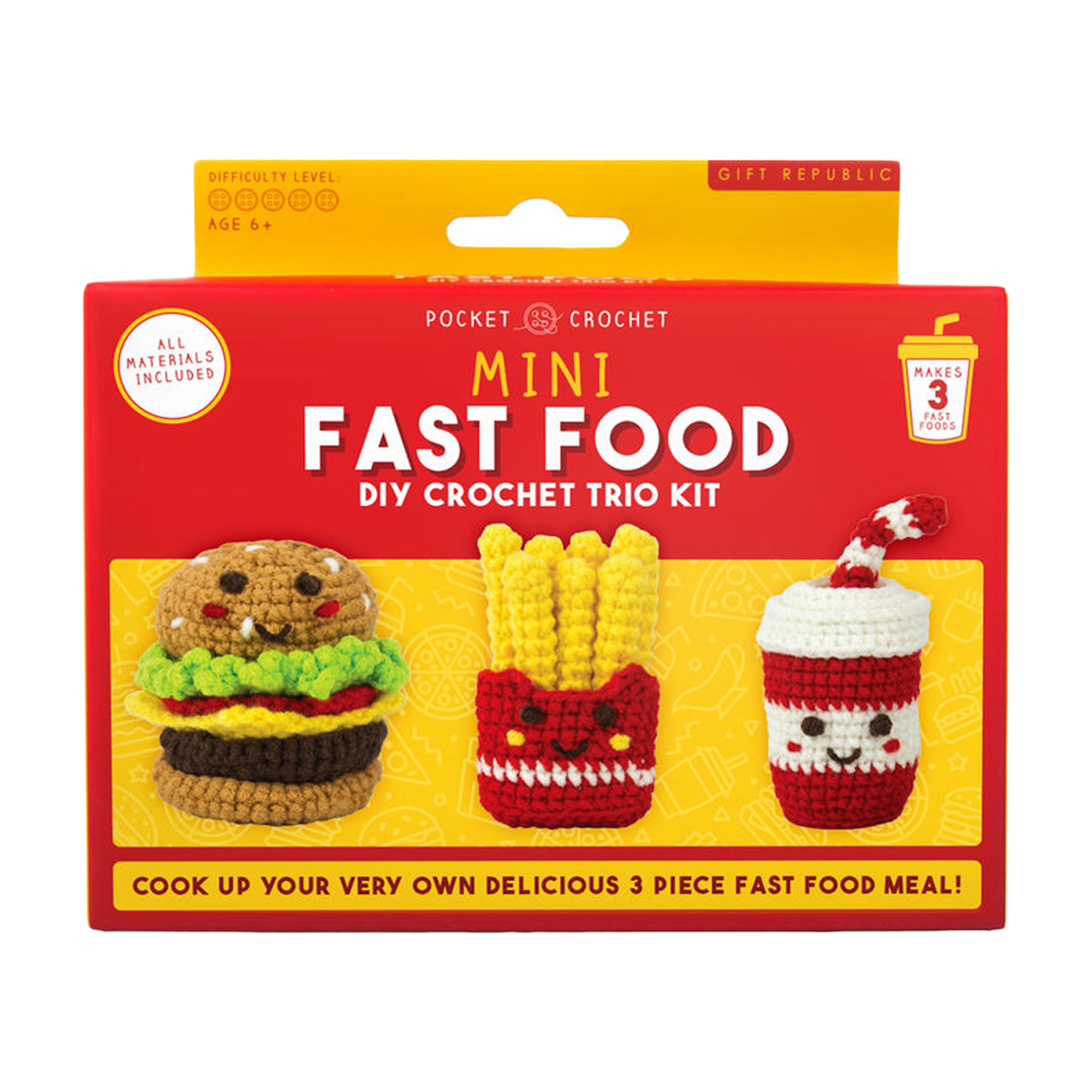 • Komplettes Häkelset für kleine Fast Food Modelle – alles im Set enthalten