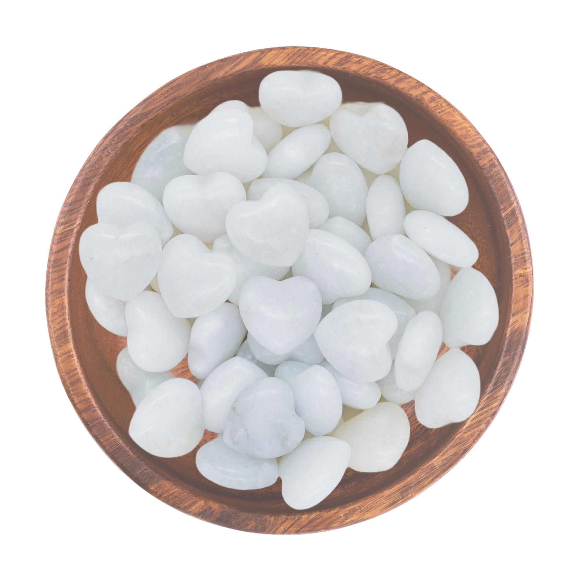 - 50 kleine, weisse Mineralien-Herzchen aus Baryt, perfekt als Geschenk oder für die Sammlung.