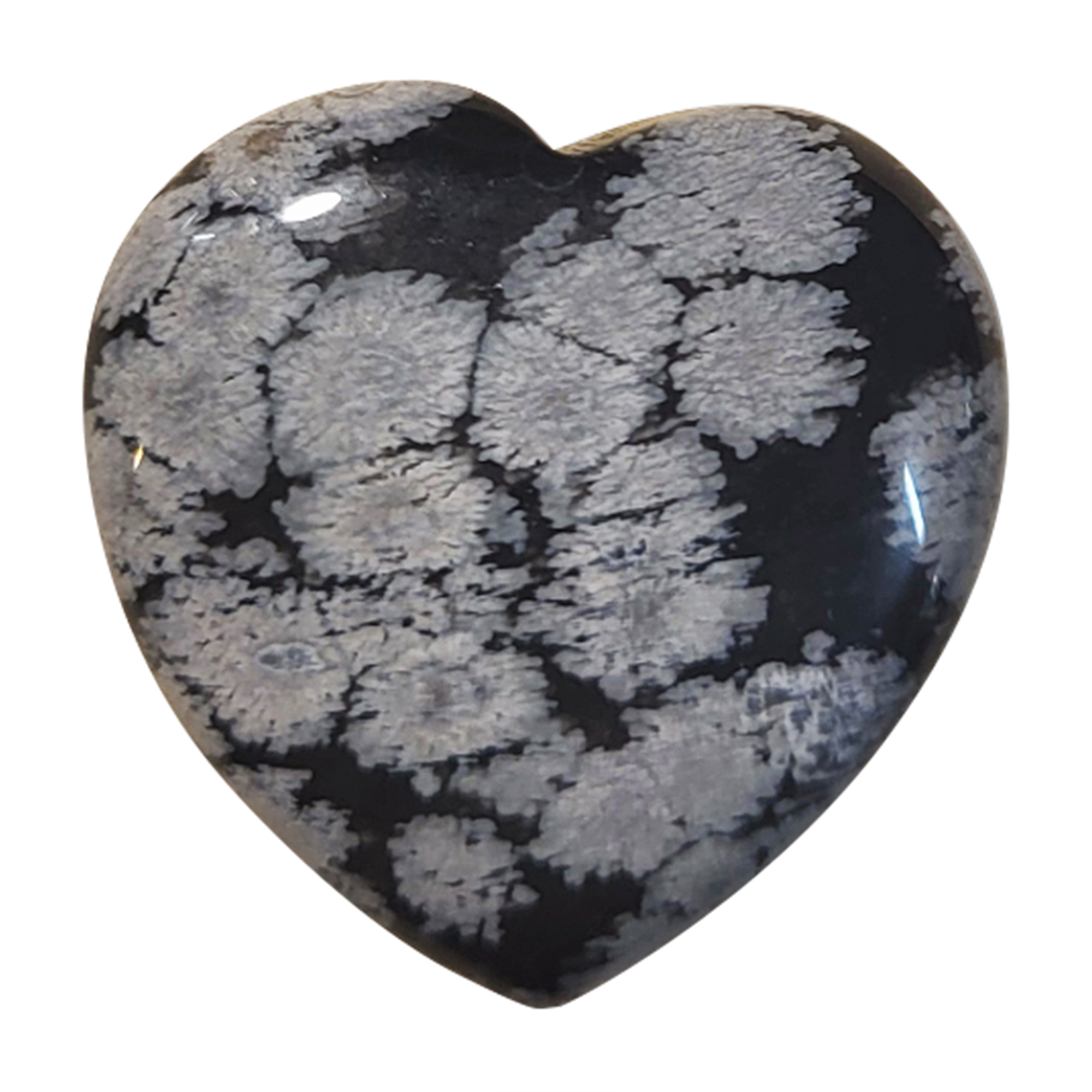 - Schönes Mineralien-Herz aus 25 mm grossem Schneeflockenobsidian mit einzigartiger weisser Musterung.
