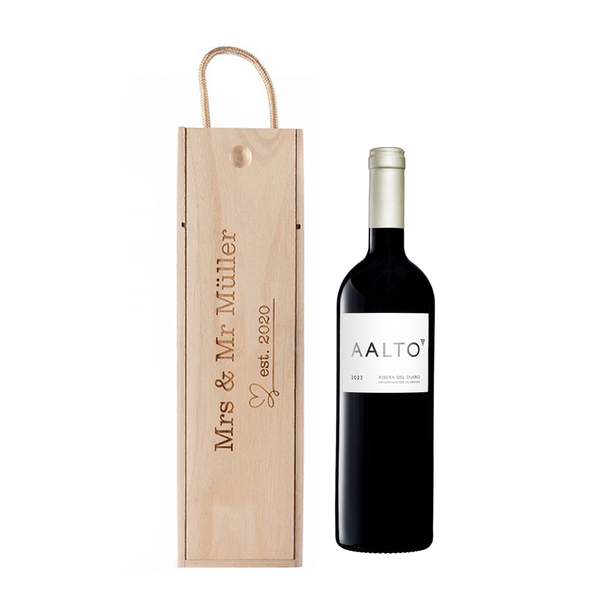 Verschenke einen besonderen Genussmoment mit der personalisierbaren Weinkiste und dem Aalto 2022 aus der berühmten Region Ribera del Duero.